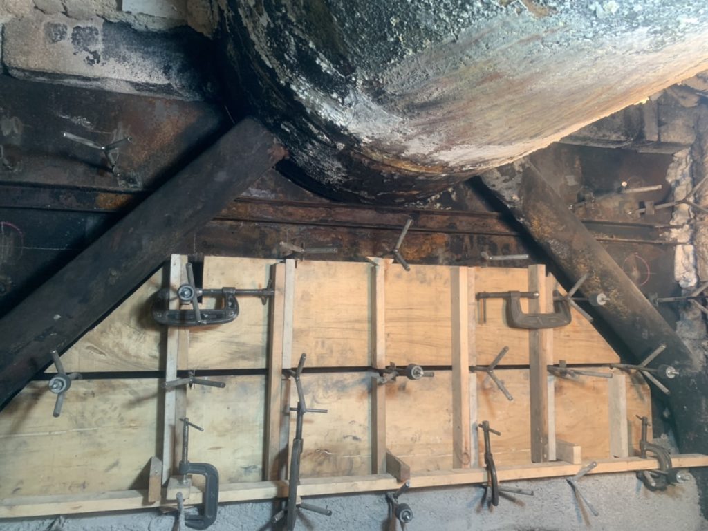 重さがかかる下部に型枠を施工する事で膨らみを抑えて施工をしております