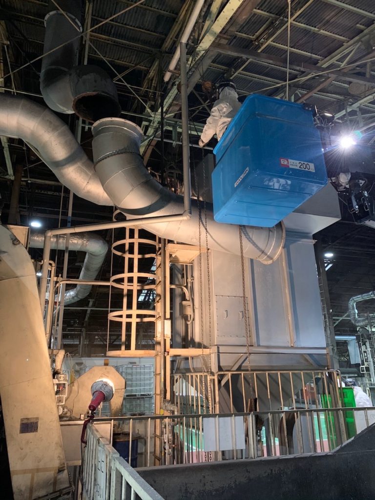 アルミ溶解炉集塵機配管清掃