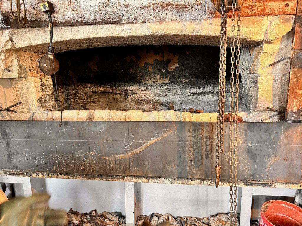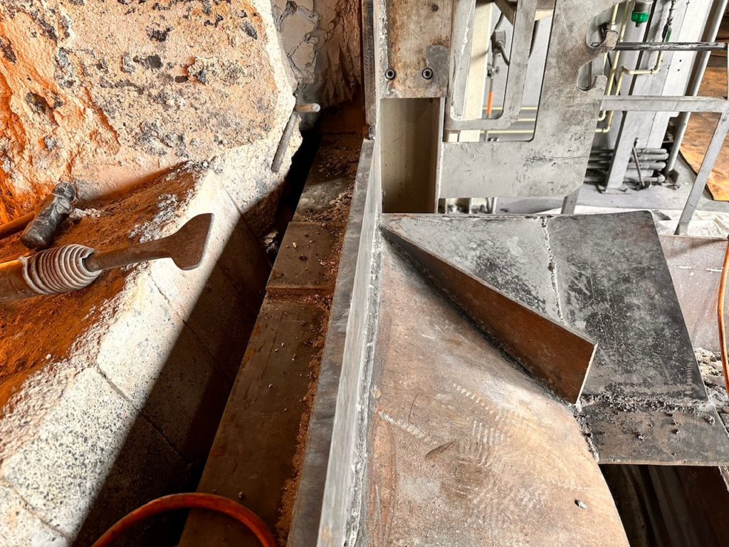 溶解炉作業口下部補修、耐火材打ち換え