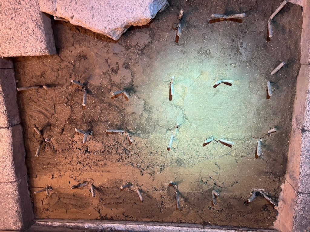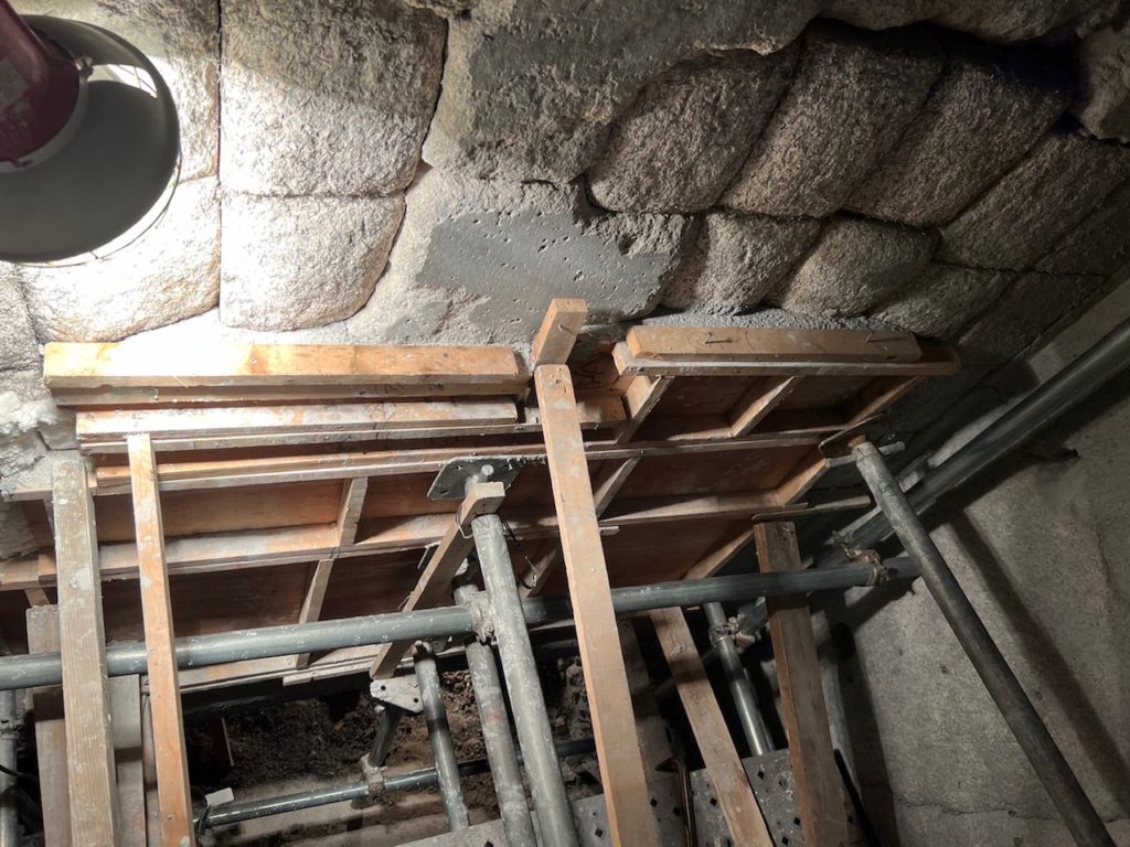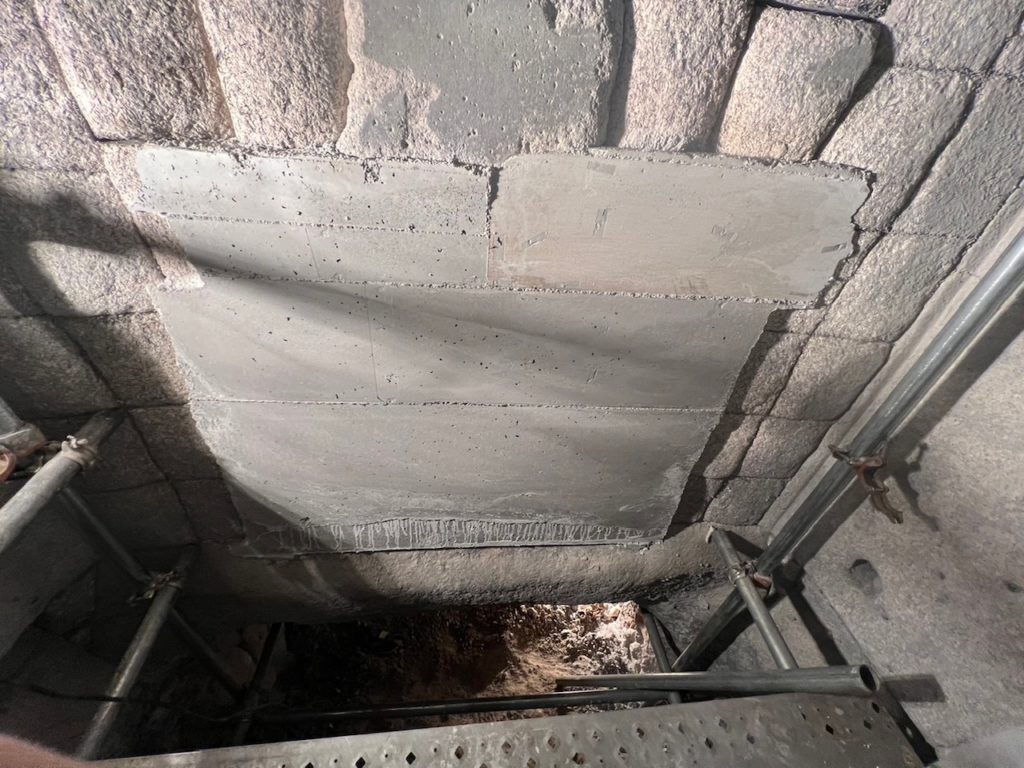欠落してしまった耐火ブロックや耐火煉瓦、中心のアンカー部分を確認し施工範囲を確認します。
