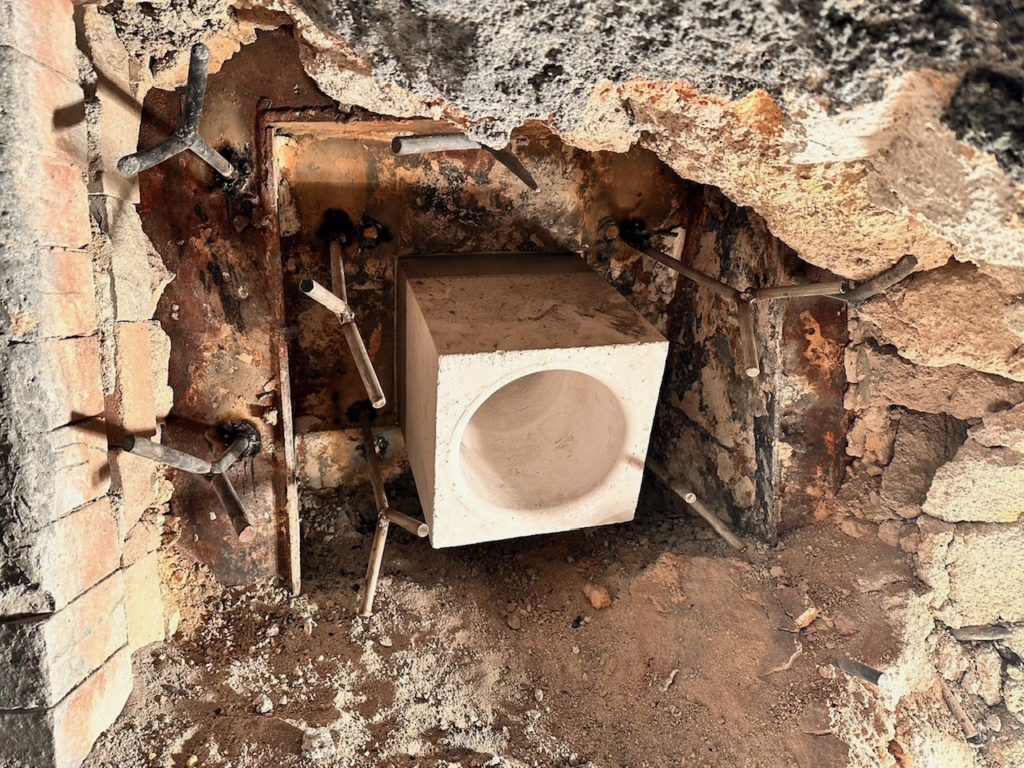 火の噴射を想定しながら火口の耐火材を丁寧に施工をします。