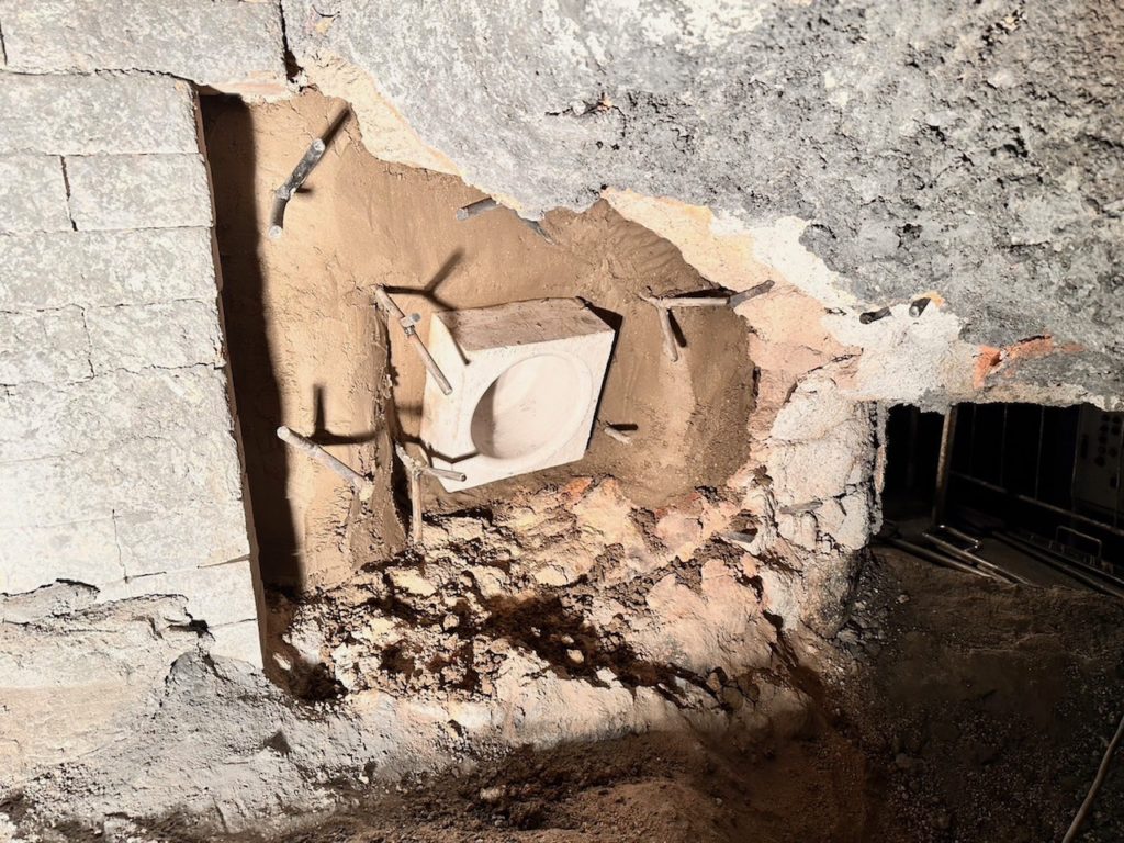 炉内からバナー周辺の吹き出し口の耐火材、断熱材の解体作業を実施します。