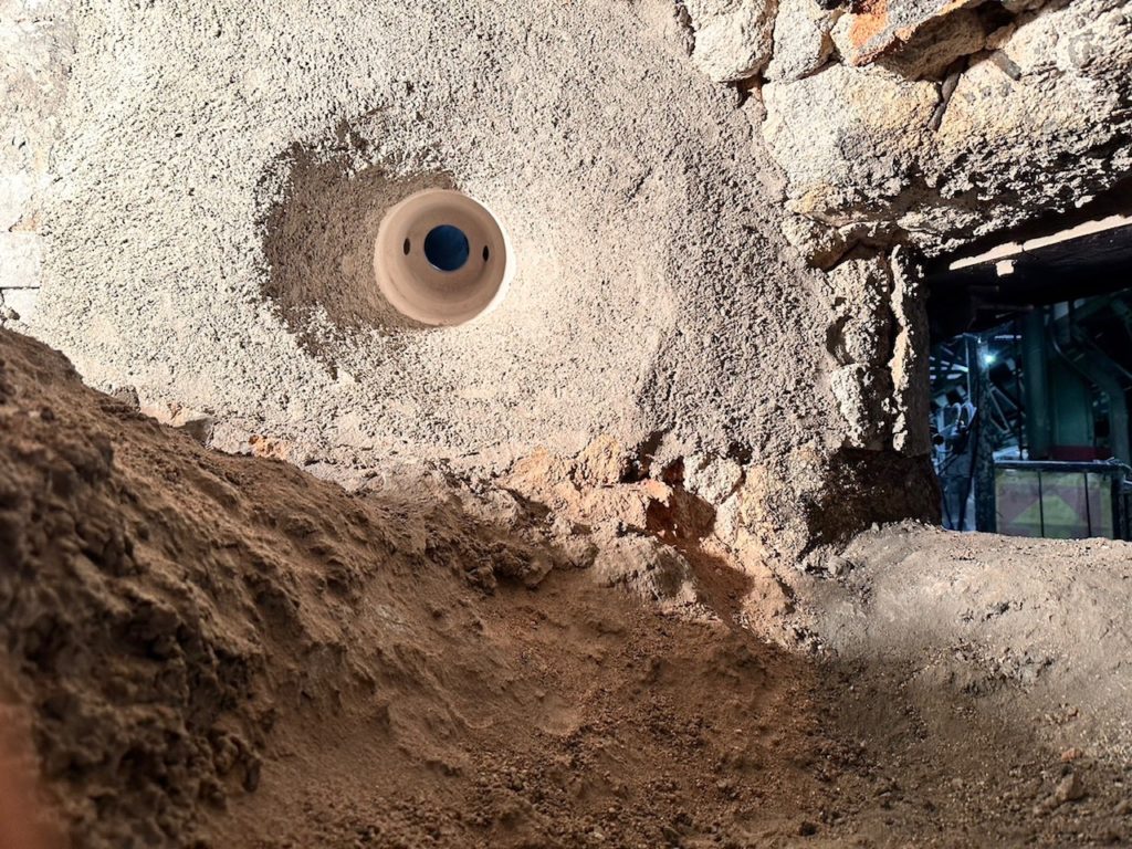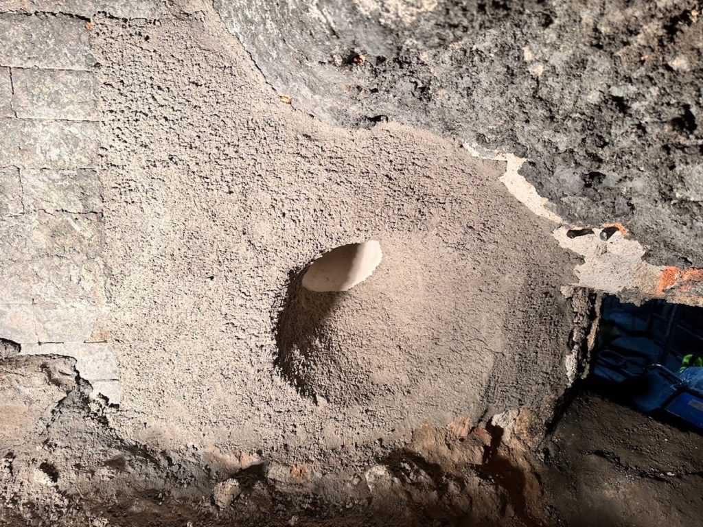 既存耐火材の面に併せて新しい耐火材を施工していきます。