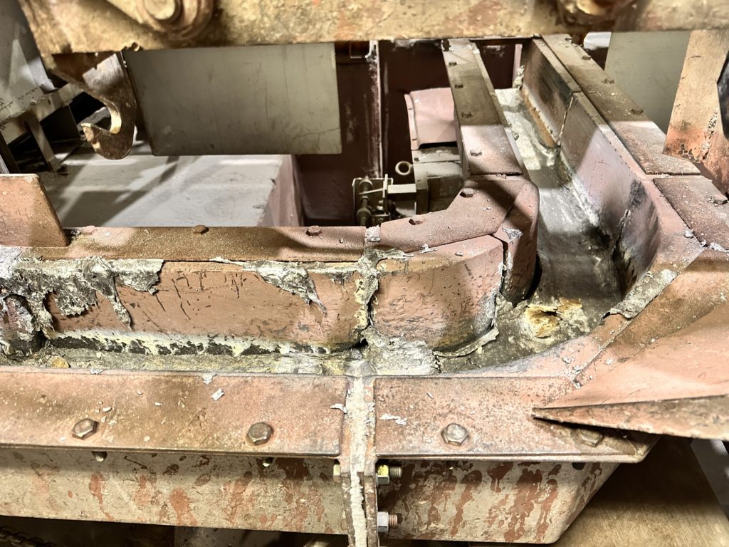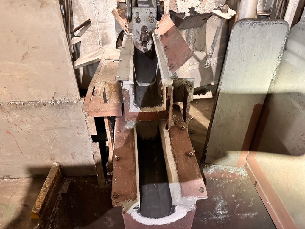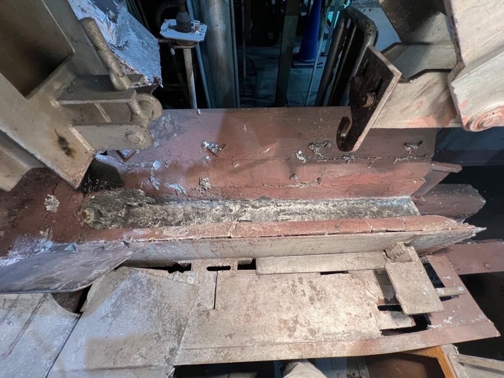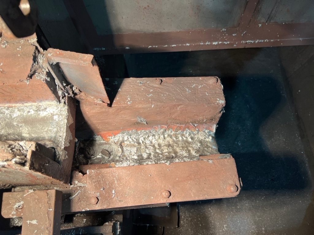 出湯口は常にアルミ湯を流している状態ではないため、溶解湯の付着や温度の高低で周囲の鉄部や耐火材などが膨張と伸縮を