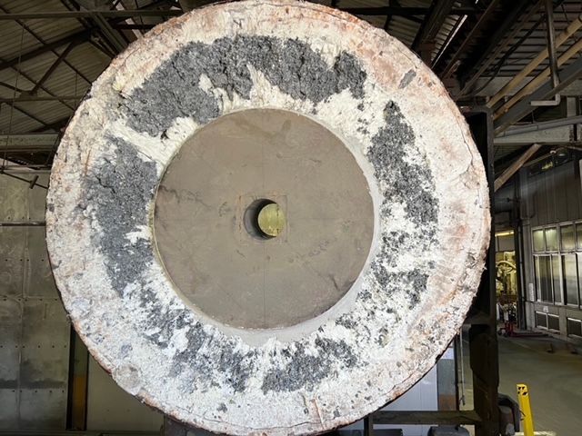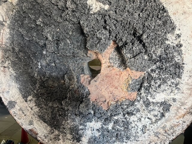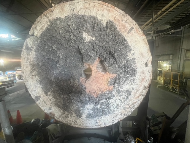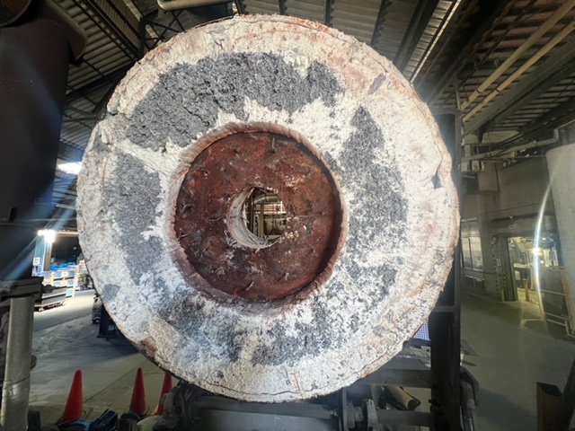 酸化物が大量に付着しており耐火材の劣化の具合が非常に激しい状況でした